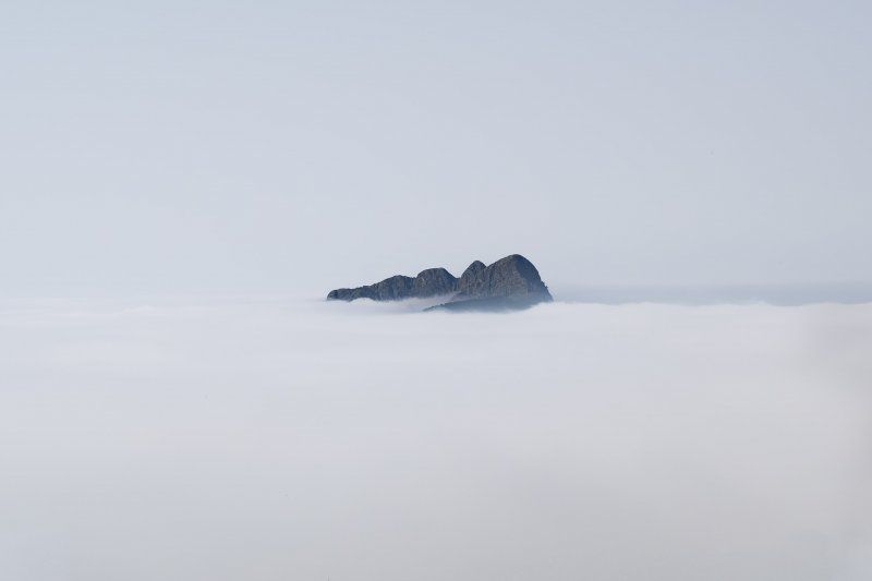 Esta foto está sacada desde la cima de Bianditz. Esta foto muestra como un manto de niebla tapa el bajo de Peñas de Aia y deja a la vista las 3 cimas del monte.