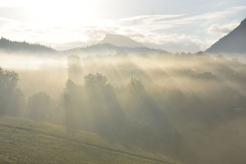 Imagen captada en una mañana de otoño con niebla desde la anteiglesia de Larrino (Aretxabaleta) y con Aloña al fondo.