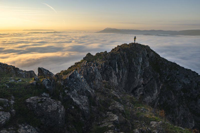 Autofoto. Amanecer desde lo alto de Udalaitz. Al fondo Aitzgorri.