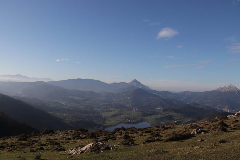 Vista del embalse de urkulu desde orkatzategi y en el horizonte los montes Murugain y Anboto