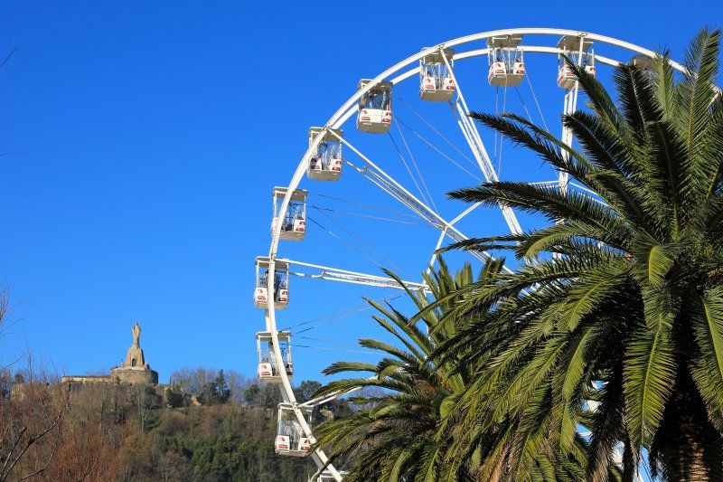 la noria de navidad en el paseo de la playa de la concha con el monte urgull al fondo