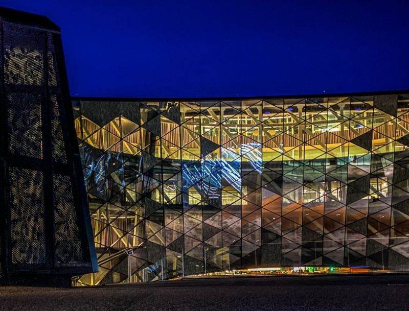 Marisma y estuario del río Urola llegando al mar en Zumaia. A la izquierda se ve el faro, a la derecha el museo Zuloaga