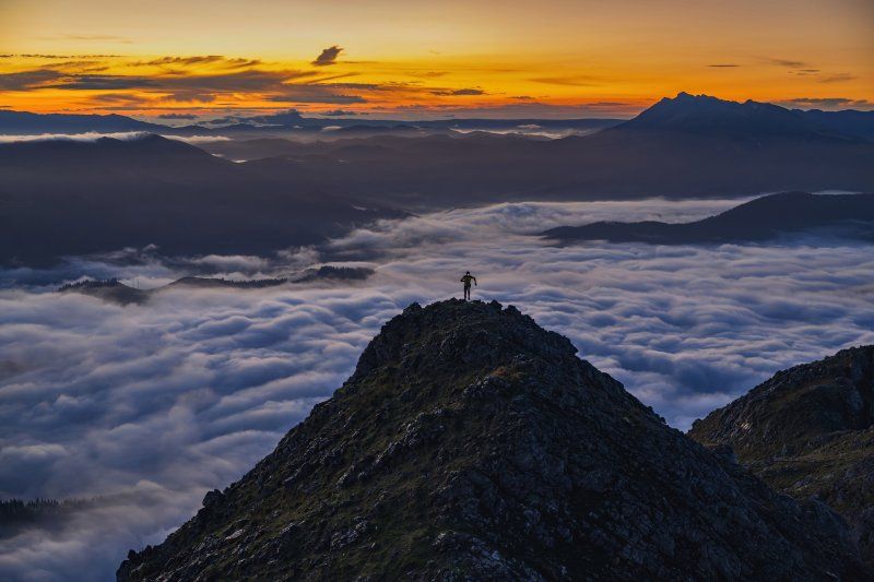 Amanecer junto al corredor de Montaña Ibai Larrea en el Monte Udalaitz.