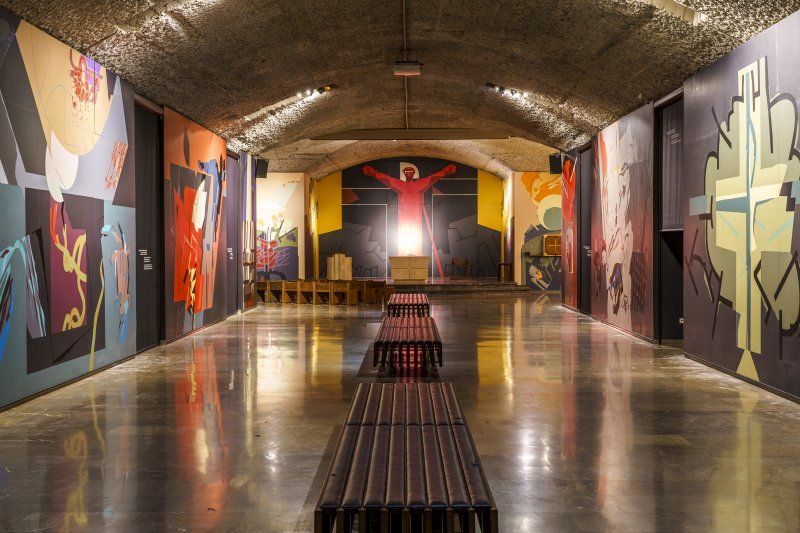 Visita al santuario de ARANZAZU. Al visitar la cripta me impresiono los murales de NESTOR BASTERRETXEA y quise fotografiar ese momento.