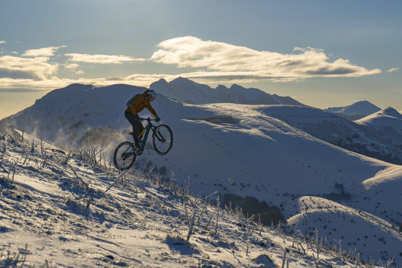 Nevada este ultimo invierno, disfrutando en bici en el parque natural de aitzgorri. Ciclista Markel Uriarte.