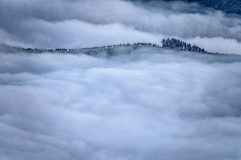 Hilera de arboles entre las nieblas de 2 valles