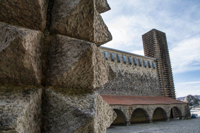 Un lateral del Santuario de Aranzazu con sus originales torres de espino.