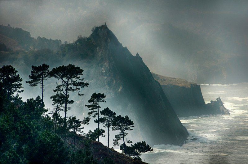 El Faro de La Plata en la bocana de Pasajes visto desde Jaizkibel.
