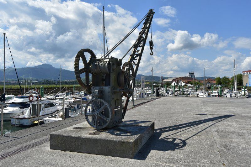 Antzinako garabia, garai bateko oroitzapena, ontziralekuan, Molla pasealekuan, aireportutik gertu. / Antigua grua, recuerdo de otros tiempos, en el embarcadero, del paseo de Molla, cerca del aeropuerto.