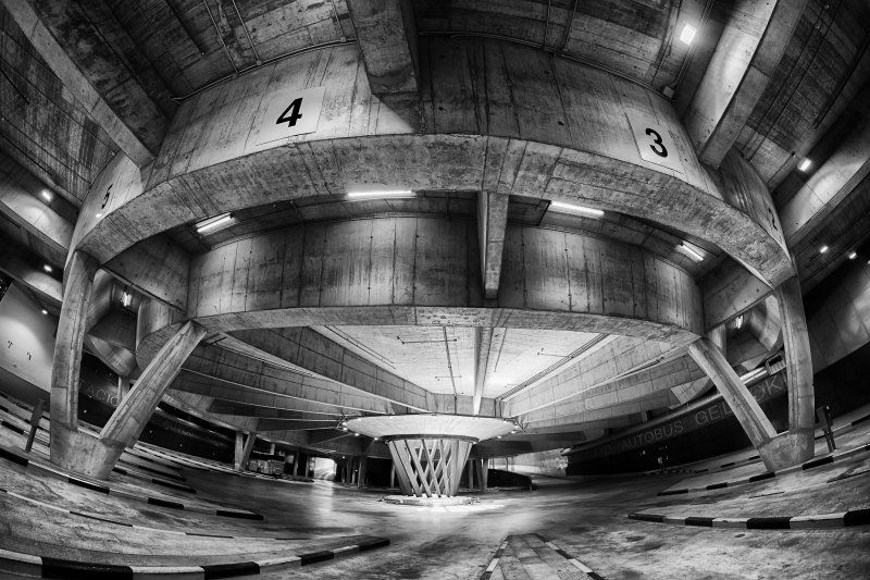 La barandilla de la Concha se refleja en un charco de los bajos del paseo, congelada en el tiempo y el espacio