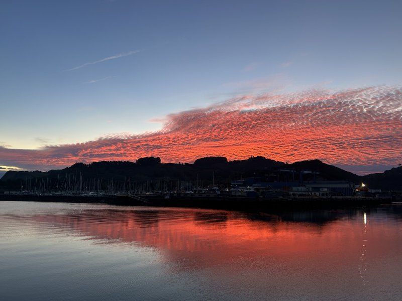 Desembocadura del Río Urola con Puerto deportivo al fondo, en un amanecer con viento Sur.