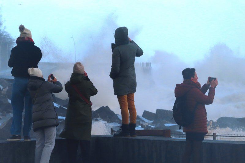 Equipadas con ropa plenamente invernal,disfrutan del oleage,en pleno paseo nuevo,desde el kurssal ,sin duda ,momentos inborrables,para recordar.