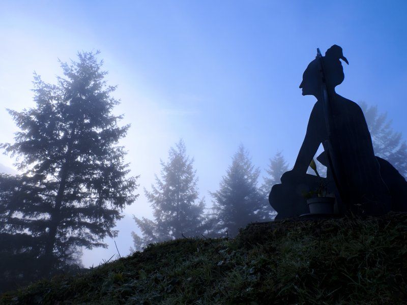 Imagen captada en una mañana de otoño con niebla desde la anteiglesia de Larrino (Aretxabaleta) y con Aloña al fondo.
