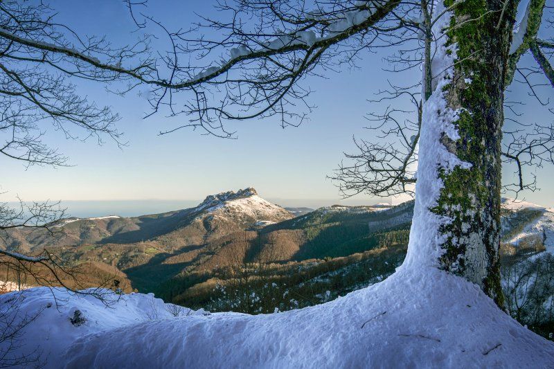 Peñas de Aia, con el Cantábrico al fondo, desde la subida a Bianditz.