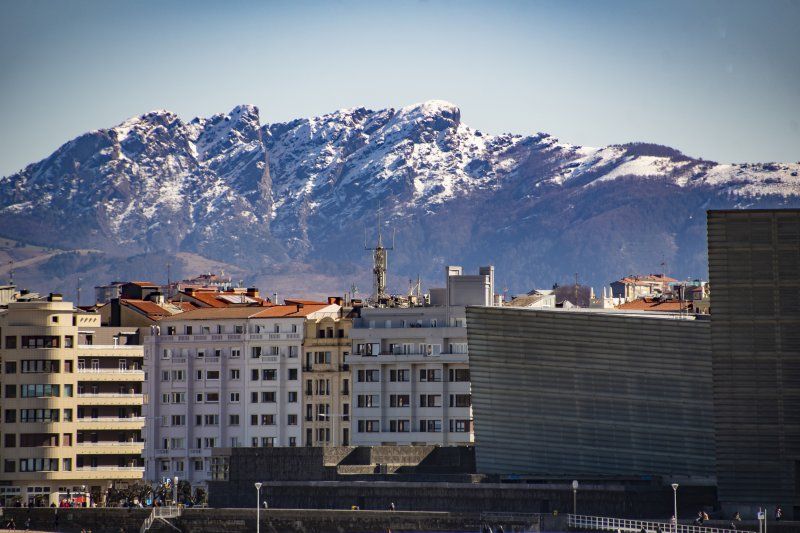 Las peñas de Aia asoman sobre el barrio de gros un frío día de invierno.