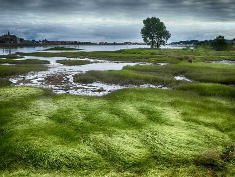 Aiako Harriak, Irundik ikusita, hura estaltzen duten hodeien artetik atera nahian. / Las Peñas de Aia vistas desde Irun, intentando salir de entre las nubes que la cubren.