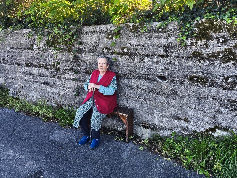 Orio vestigios del pasado subiendo al pórtico de la iglesia de Orio, una de las pocas columnas recuperadas. patalo