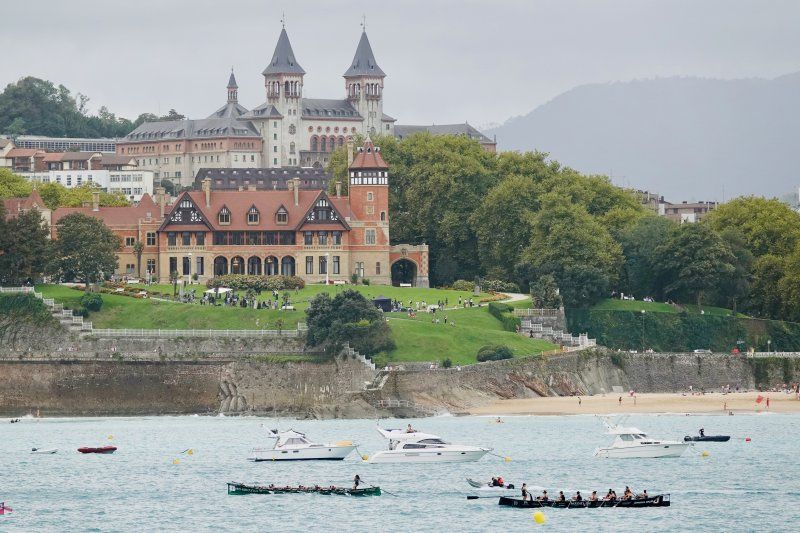 Urdin, zuri eta grisen arteko zerua, kostaldeko alde batzuk eguzki izpi batez argituak eta beste batzuk gris batean geratzen dira. / Un cielo entre azules, blancos y grises, unas zonas de la costa...