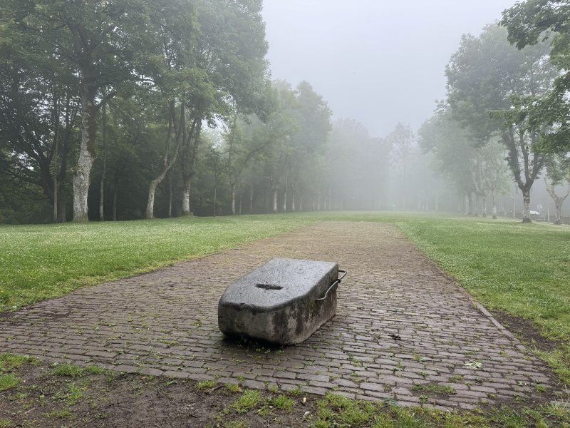 Dia lluvioso en la Zurriola, esta persona sola en toda la playa como si fuera la unica superviviente.