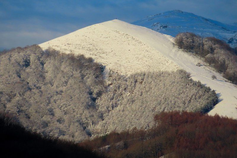 Cima emblematica que si saltal,consigues los 1000m mt,con el monte aratz de fondo,desde el puerto de etxegarate con una persosa parece ser en la cima.