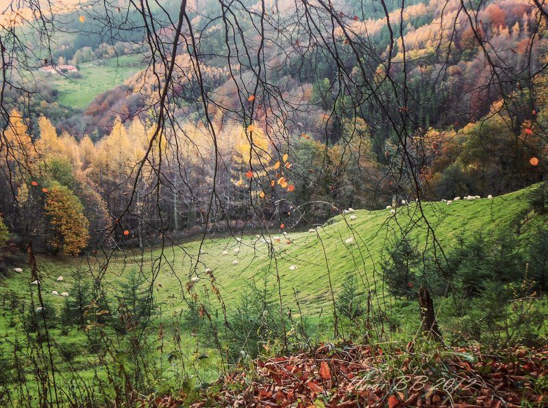 Ovejas latxas, bosque y caserios, más bonito y gipuzkoano imposible