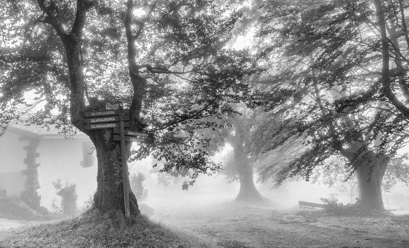 Bergarako Zabaletamendi auzoko bidegurutzea baserri ezberdinetara joateko